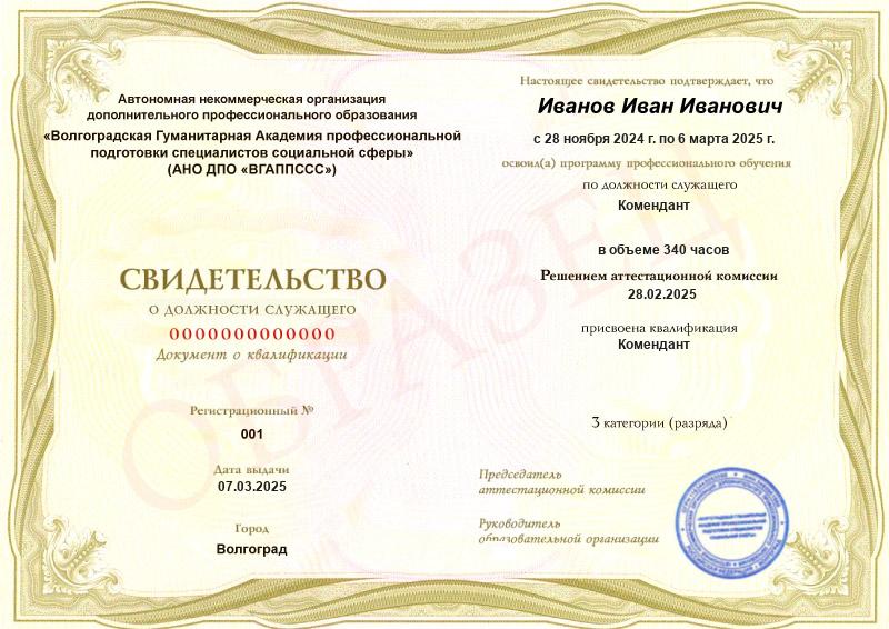 Да, АНО ДПО «ВГАППССС» выдаёт документы о квалификации установленного организацией образца, возможность выдачи образовательной организацией документов установленного образца регламентирована приказом Минобрнауки РФ №499.