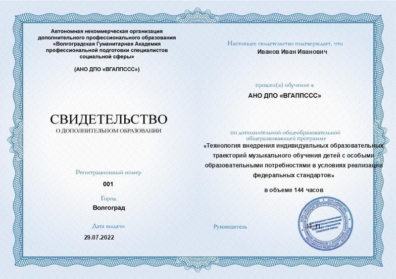 Да, АНО ДПО «ВГАППССС» выдаёт документы о квалификации установленного организацией образца, возможность выдачи образовательной организацией документов установленного образца регламентирована приказом Минобрнауки РФ №499.