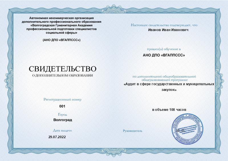 При отсутствии требуемого образования вам будет выдано свидетельство о дополнительном образовании в электронном виде.