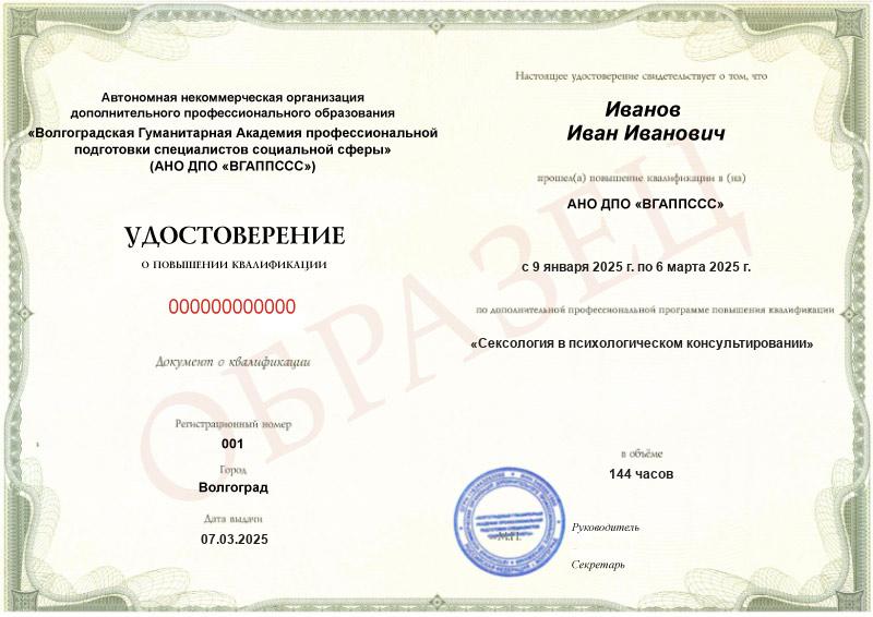 Сексология в психологическом консультировании (144ч)
